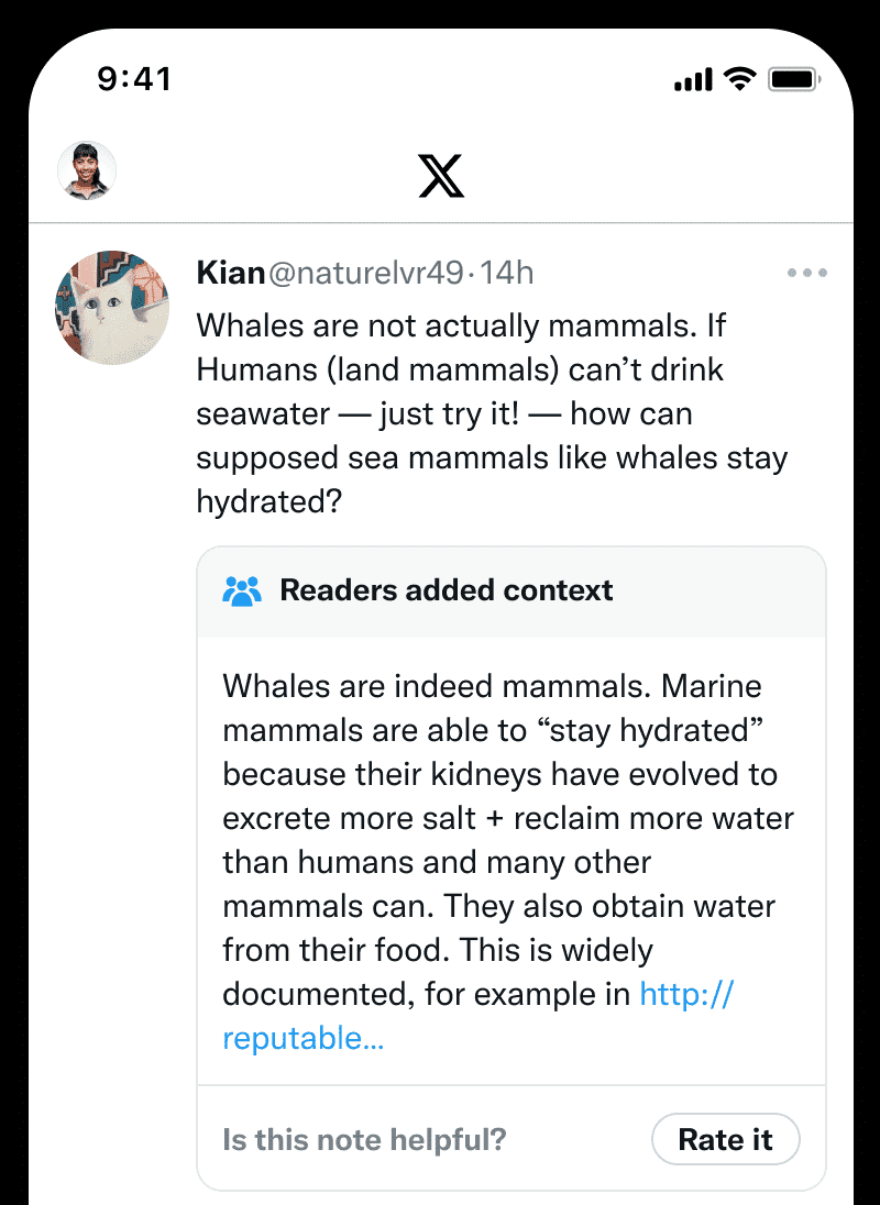 If you still use Twitter, you might have seen Community Notes in action. Underneath a tweet with a somewhat controversial thesis (certainly more disputed than whether whales are mammals), the Notes feature invites other users to put in clarifying comments. It then invites still other users to rate those comments. For instance, here is what my “Activity Feed” in Twitter looks like these days: